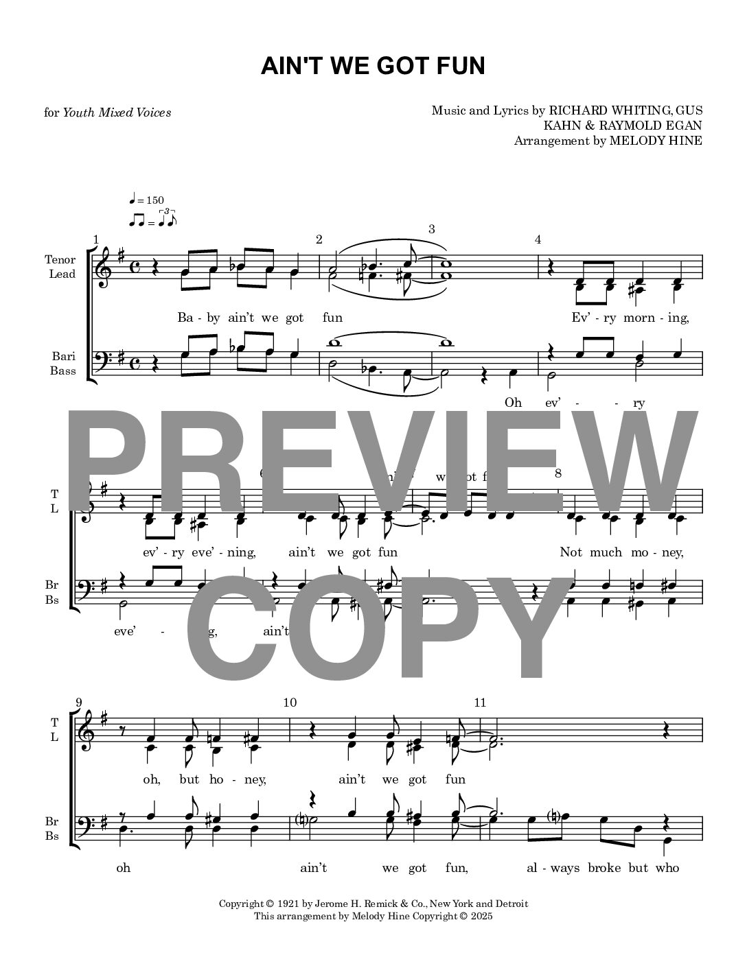 This song is in the public domain in the United States and incurs no copyright fee. Upon purchase, you can make as many copies as are needed for your ensemble. For residents outside the United States, please refer to your country’s copyright laws.