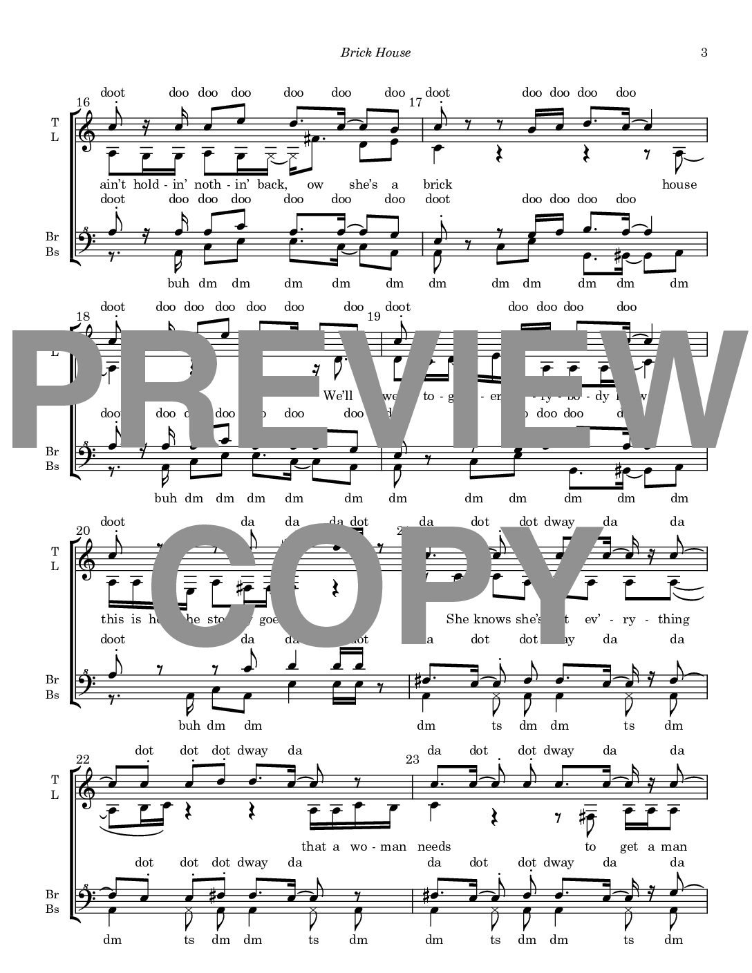 Brick House – Barbershop Upper Voices