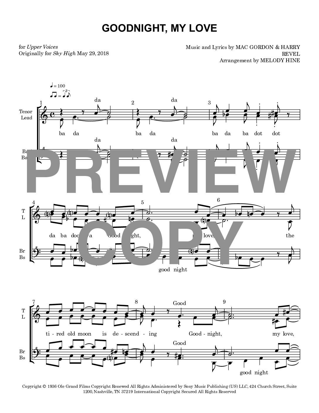 Goodnight, My Love – Barbershop Upper Voices