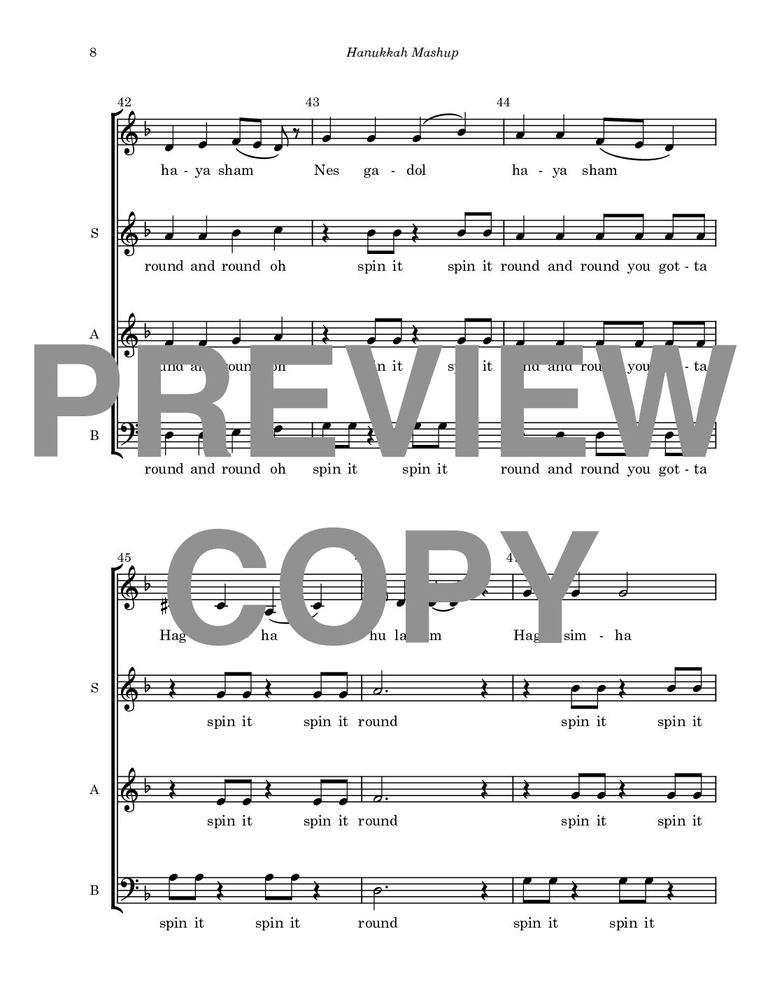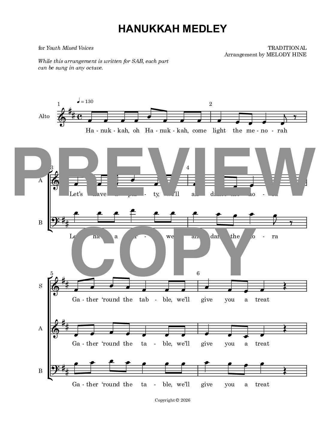 Hanukkah Medley – 3-Part