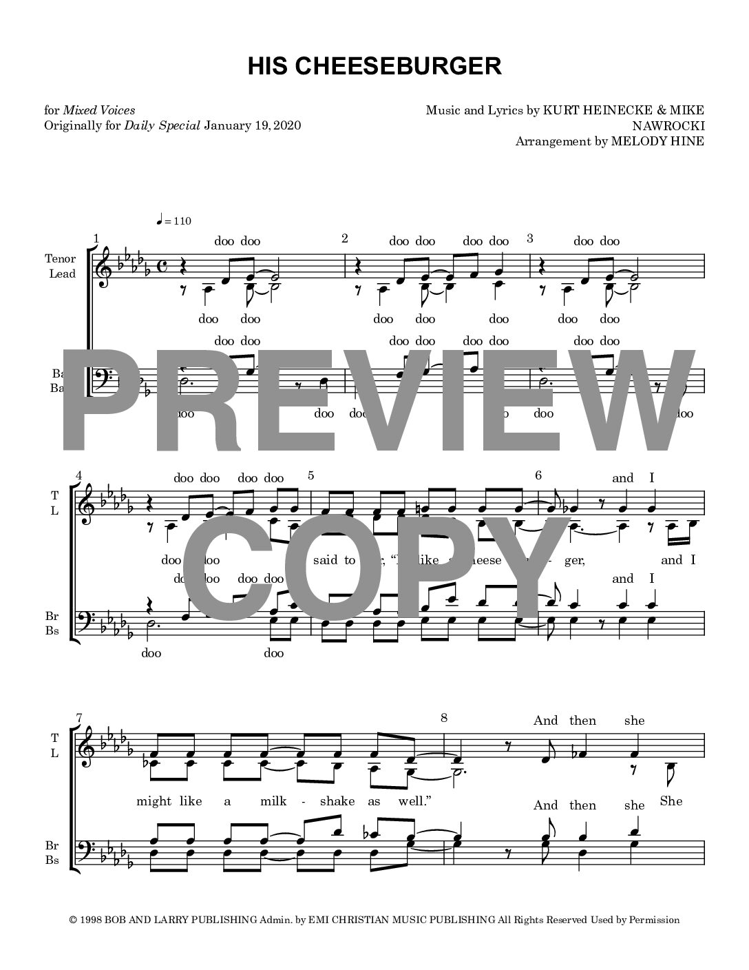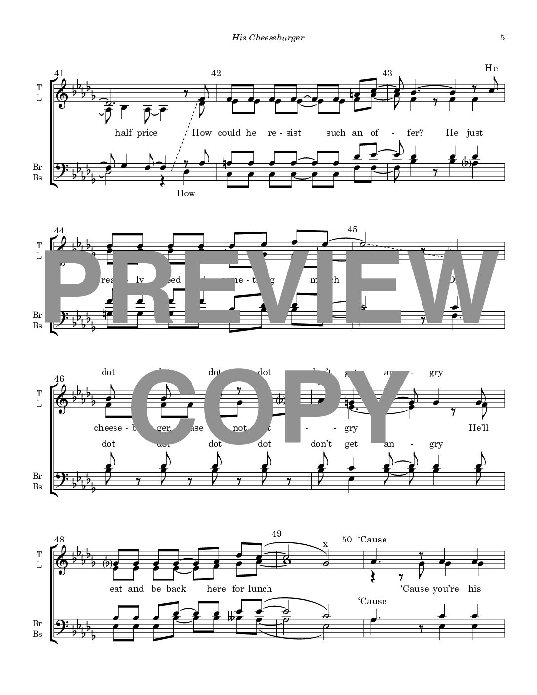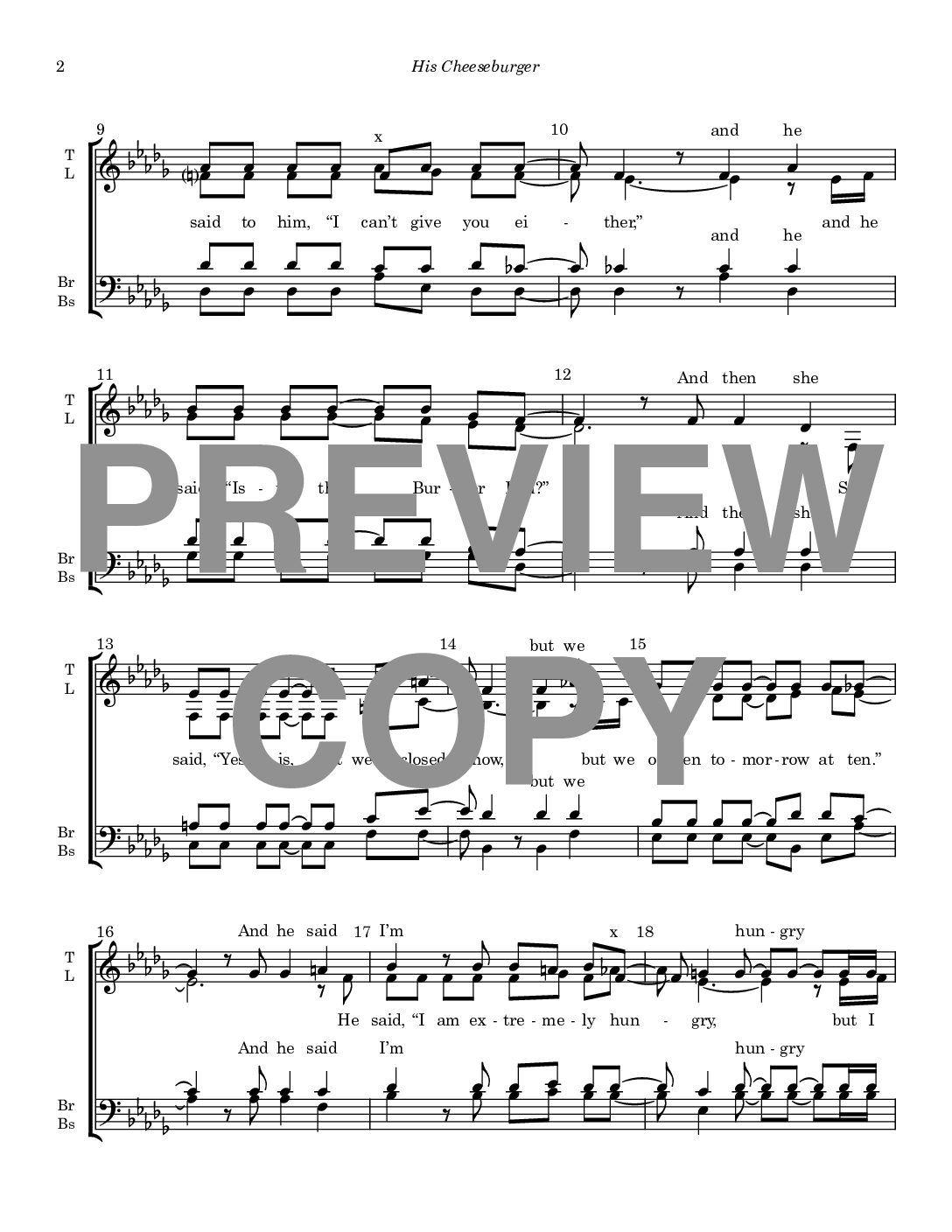 His Cheeseburger – Barbershop Mixed Voices